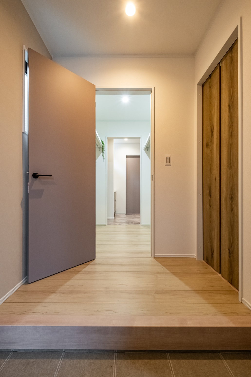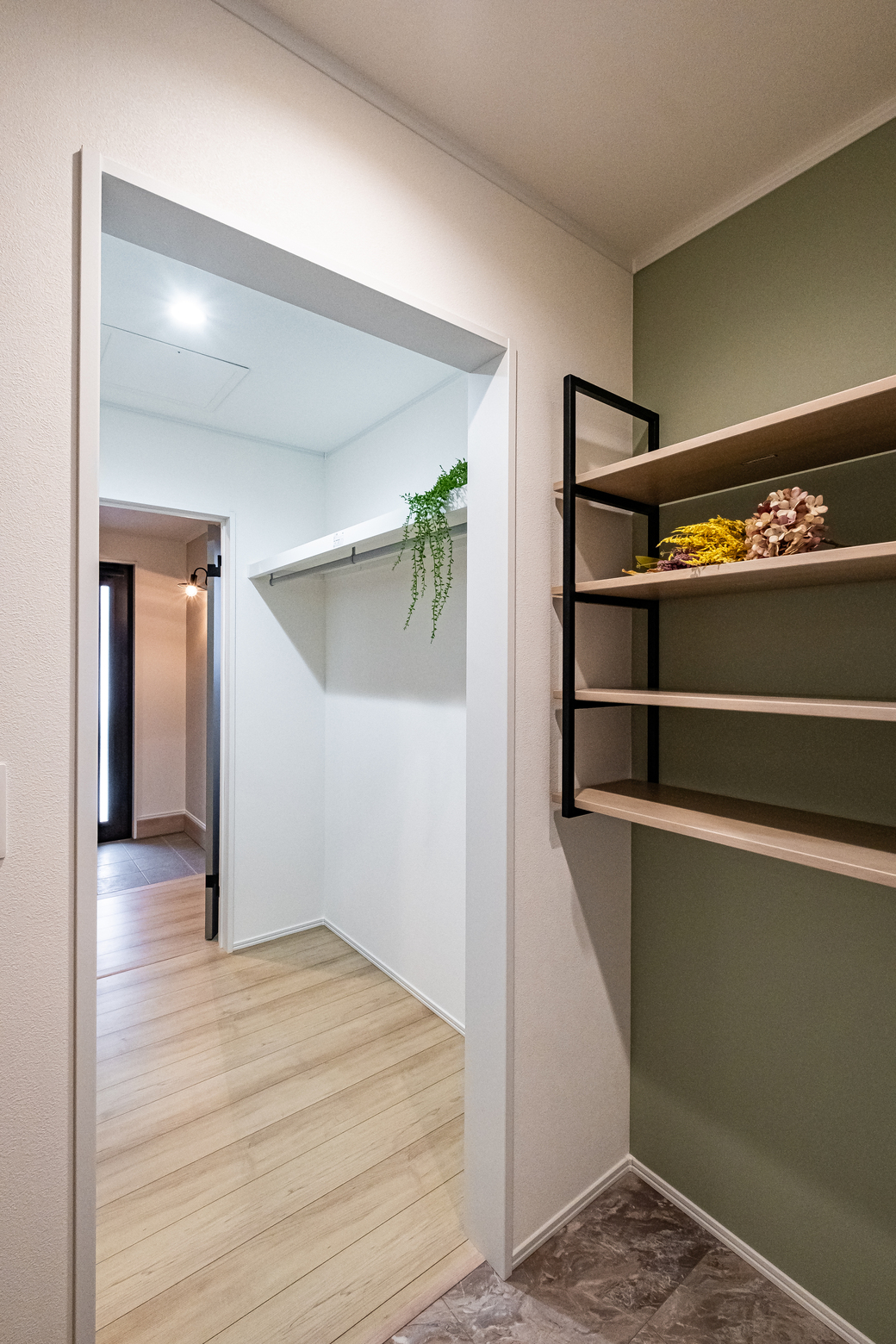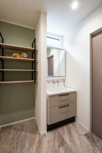 玄関から必要な場所へ直行できる回遊ルートを採用。洗う・干す・片づけるなどの家事が効率的に進みます。