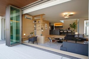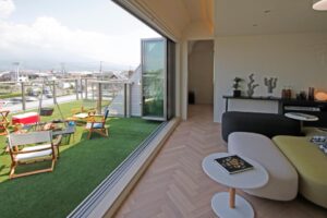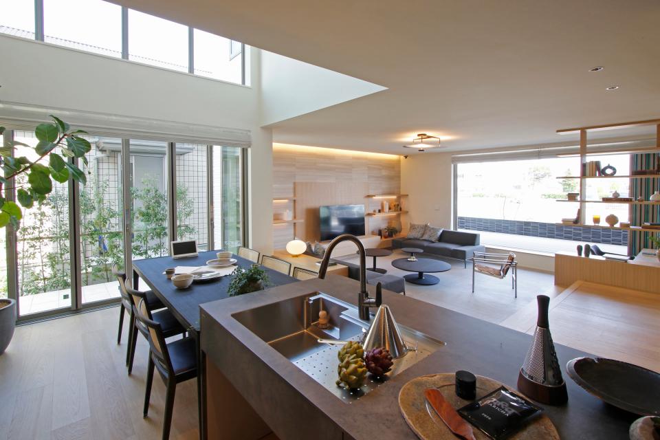 強靭な構造が可能にする大空間と高い耐久性により、二世帯家族から子育て世代まで、世代を超えて住み継がれる住まいを提案します。